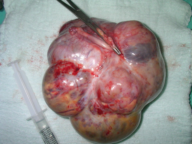 Yumurtalıklara ait kistik kitle batın dışarısına alınırken